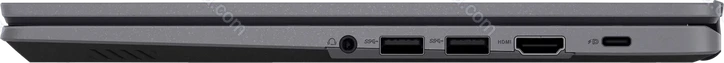 - 2x USB-C 3.0 with DisplayPort (5Gb/s, Power port PD-In), 2x USB-A 3.0 (5Gb/s), 1x HDMI 1.4, 1x 3.5 mm audio jack