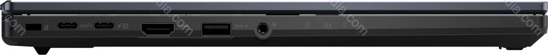- 1x USB-C 3.1 with DisplayPort (10Gb/s, mains connection PD-In), 1x USB-C 3.1 (10Gb/s, mains connection PD-In), 1x USB-A 3.0 (5Gb/s), 1x USB-A 2.0 (480Mb/s), 1x HDMI 1.4, 1x 3.5mm jack, 1x RJ-45 (1000Base-T), 1x microSD, 1x smart card