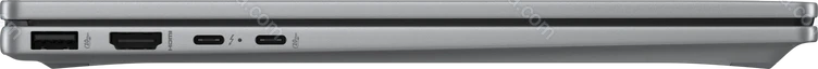 - 1x Thunderbolt 4 / USB4 with DisplayPort 2.1 (40Gb/s, PD-Out, Power port PD-In), 1x USB-C 3.1 with DisplayPort 1.4 (10Gb/s, PD-Out, with device charging support), 2x USB-A 3.1 (10Gb/s), 1x HDMI 2.1, 1x 3.5 mm audio jack Line-in/out