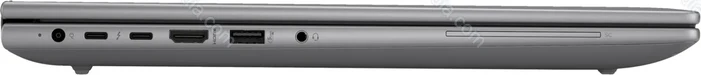 - 2x Thunderbolt 4 / USB4 with DisplayPort 2.1 (40Gb/s, PD-Out), 1x USB-A 3.0 (5Gb/s, PD-Out), 1x USB-A 3.0 (5Gb/s), 1x HDMI 2.1, 1x 3.5mm jack Line-In/Out, 1x RJ-45 (1000Base-T), 1x SIM (Nano-SIM), 1x SD Card, 1x DC input