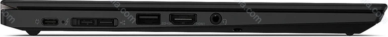 - 1x Thunderbolt 3 / USB-C 3.1 with DisplayPort 1.4 (40Gb/s, PD-Out, Power port PD-In), 1x USB-C 3.0 with DisplayPort 1.2 (5Gb/s), 2x USB-A 3.0 (5Gb/s), 1x HDMI 1.4b, 1x 3.5 mm audio jack, 1x Lenovo Ethernet Extension Gen2 (Intel I219-V), 1x microSD, 1x SmartCard (Smart card reader)