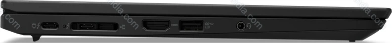 - 1x Thunderbolt 4 / USB4 with DisplayPort 1.4 (40Gb/s, PD-Out, Power port PD-In), 1x Thunderbolt 4 / USB4 with DisplayPort 1.4 (40Gb/s, PD-Out), 1x USB-A 3.0 (5Gb/s, with device charging support), 1x USB-A 3.0 (5Gb/s), 1x HDMI 2.0, 1x 3.5 mm audio jack, 1x Lenovo Ethernet Extension Gen2, 1x SmartCard (Smart card reader), 1x SIM (Nano-SIM)