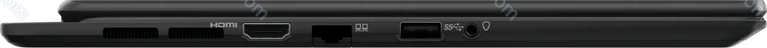 - 2x Thunderbolt 4 / USB4 with DisplayPort 1.4 (40Gb/s, PD-Out 100W, mains connection PD-In), 1x USB-A 3.1 (10Gb/s), 1x HDMI 2.1, 1x 3.5mm jack, 1x RJ-45 (1000Base-T)