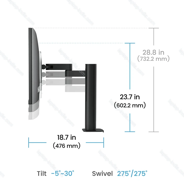 - 610.4x602.2x476mm with stand compressed, 610.4x732.2x476mm with stand extracted, 610.4x427.8x87.1mm without stand